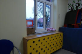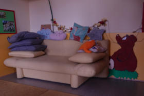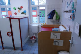 Sicherheit:Ist das ein Fluchtweg für kleine Kinder??links: Fluchtfenster mit vorgebauter Heizungrechts: Hier landen die Kinder auf einem Holzpodest, wenn sie durch das Fenster kommen.Privatsphäre: (links)Haben Kinder kein Recht darauf? Eine vom Flur einsehbare offene Toilette und ein Wickeltisch. Mitarbeiterraum: (rechts)Wer möchte als Mitarbeiter hier arbeiten?Mobiliar:(links)Wer möchte an diesem Tisch spielen?(rechts)Wer hat auf diesem Sofa schon alles gesessen?Hygiene?